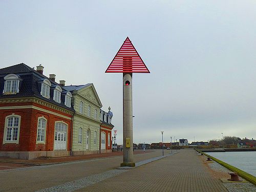 Unterfeuer Zwischen dem alten Bahnhof und dem Unterfeuer im Hintergrund das Oberfeuer. Position: 55° 20,20′ N / 11° 08,20′ E Internationale Reg. Nr.: C 1544 Tragweite: Rot 11 sm In Betrieb seit 1793, 1913 bis 1999, heutiges Feuer seit 2001 Turmhöhe: 8 m Feuerhöhe: 11 m