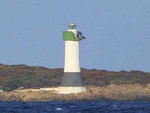 Beide Bilder wurden aus sehr großer Entfernung fotografiert. Position: 41° 09,7′ N / 09° 31,5′ E Internationale Reg. Nr.: E 1002 Tragweite: grün 8 sm In Betrieb seit: ? Turmhöhe: 9 m Feuerhöhe: 11 m
