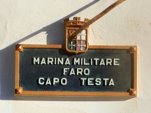 Der Leuchtturm Capo Testa innerhalb seiner Zäune als militärische Einrichtung.