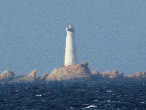 Das Bild wurde aus sehr großer Entfernung fotografiert. Position: 41° 13,0′ N / 09° 31,1′ E Internationale Reg. Nr.: E 0998 Tragweite: weiss 11, rot 8 sm In Betrieb seit: ? Turmhöhe: 16 m Feuerhöhe: 24 m