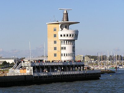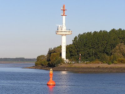 Radarturm am Wedeler Yachthafen, Elbe, Schleswig–Holstein.