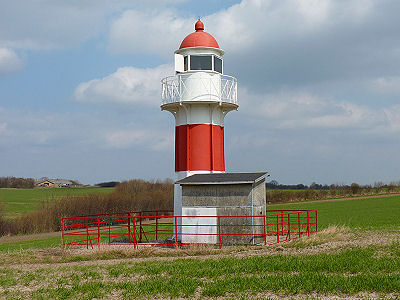 Skodsbøl Fyr, Richtfeuer, Flensburger Förde, Jütland, Dänemark Unterfeuer Position: 54° 53,6′ N / 09° 38,5′ E Internationale Reg. Nr.: C 1136 Tragweite: weiss 10 sm In Betrieb seit 1896 Turmhöhe: 8 m Feuerhöhe: 11 m