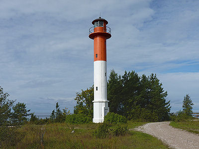 Richtfeuer Sõru, Soela Väin, im Süden von Hiiumaa, Estland Oberfeuer und Leitfeuer Position: 58° 42,24′ N / 22° 29,16′ E Internationale Reg. Nr.: C 3721.1 Tragweite: weiss 9 / rot 3 / grün 3 sm In Betrieb seit: 1934 Turmhöhe: 16 m Feuerhöhe: 18 m